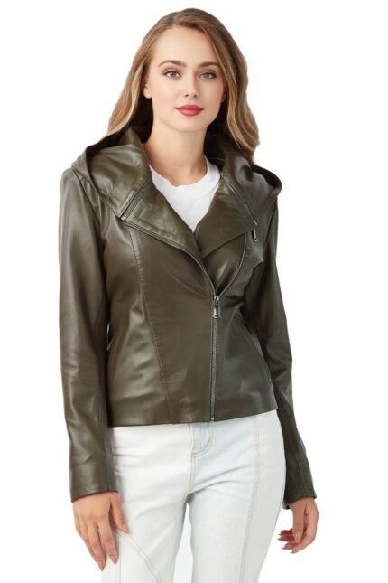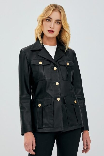 Brenda Free Style Sheepskin Black Leather Coat for Women’s