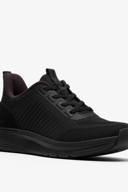 Sleek and comfortable black sneakers designed for everyday wear, featuring a cushioned fit and a versatile style that pairs easily with any casual outfit.