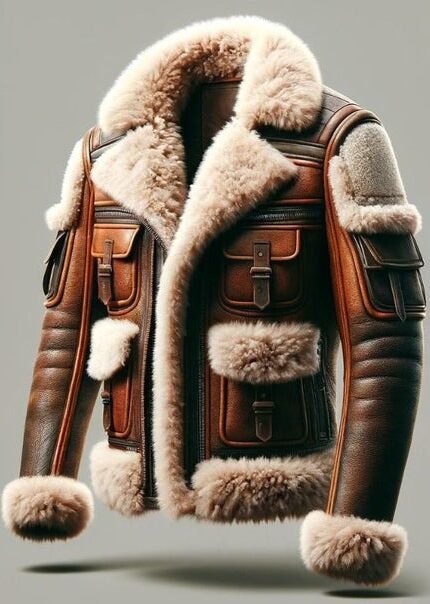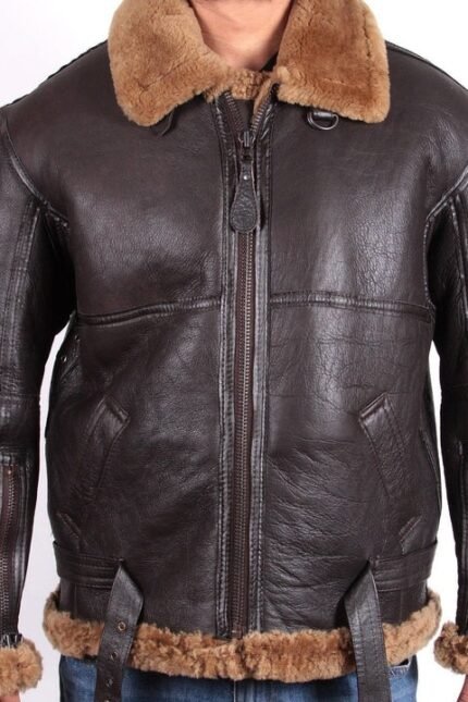B3 Brown SheepSkin Fur Shearling Leather Jacket For Men
