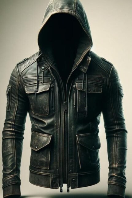 A rugged yet modern essential, this Hooded Black Distressed Leather Jacket features premium leather with a vintage finish, a comfortable inner lining, and a stylish attached hood. Perfect for everyday wear, it delivers bold street style with lasting comfort and durability.