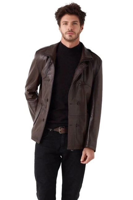 A stylish Kingston Brown High Collar Leather Jacket for Men made from premium leather with a sleek, tailored fit. Featuring a high collar and rich brown finish, it offers timeless elegance and everyday versatility.