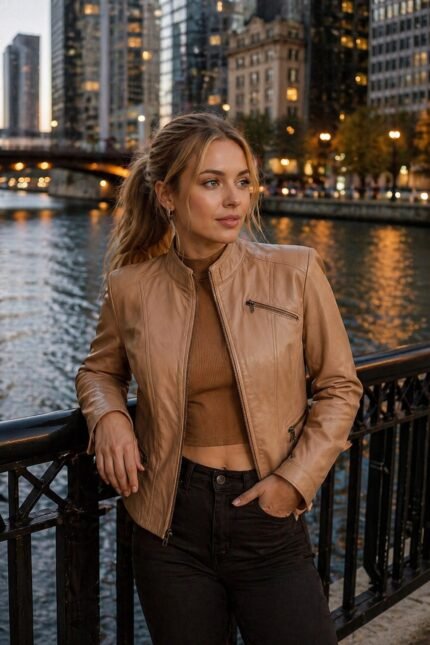Leona Fossil Tan Leather Jacket For Women