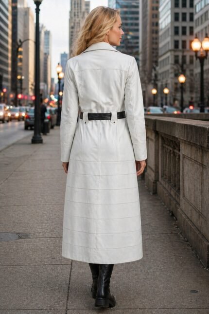 Natalia White Long Leather Coat For Women