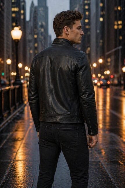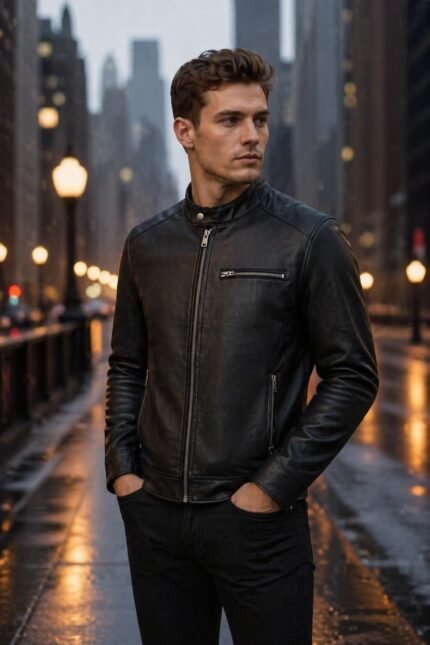 Men’s Black Slim Fit Cafe Racer Leather Jacket