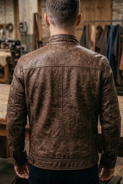Men’s Vintage Distressed Brown Leather Bomber Jacket