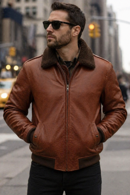 Damian Brown Fur Shearling Leather Jacket For Men