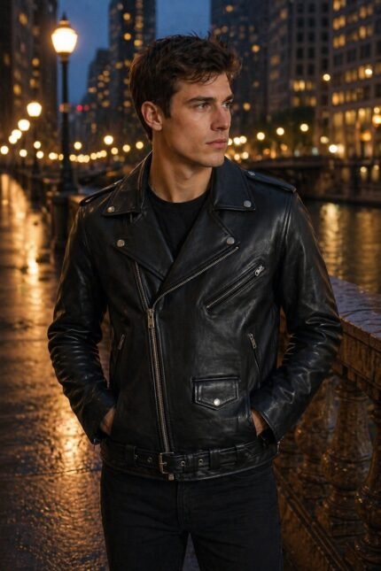 Men’s Classic Black Leather Double Rider Biker Jacket