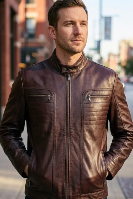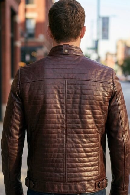 George Bordeaux Dark Brown Quilted Leather Racer Jacket