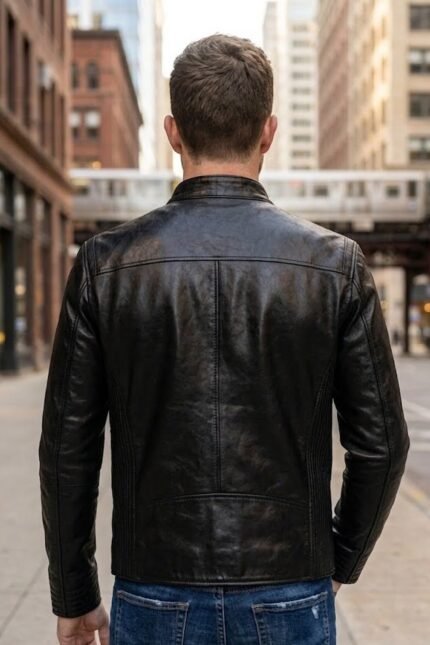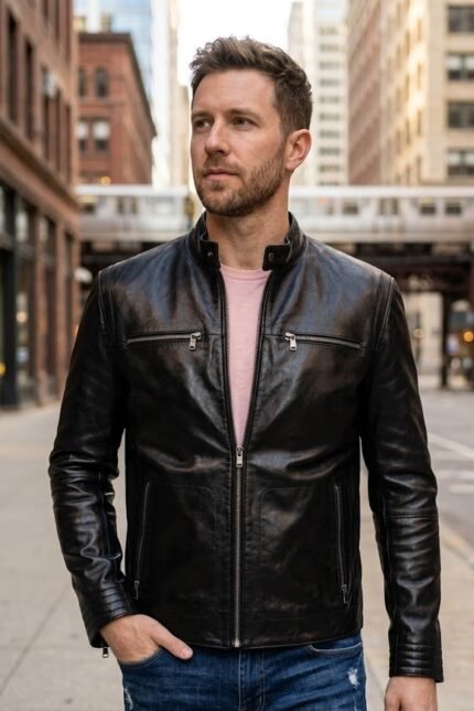 Men’s Black Slim Fit Cafe Racer Leather Jacket