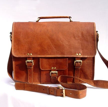 Handmade Leather Messenger Bag for Men & Women – Vintage 15-inch Laptop Briefcase – Rustic Satchel Shoulder Bag – Professional Office & College Bookbag