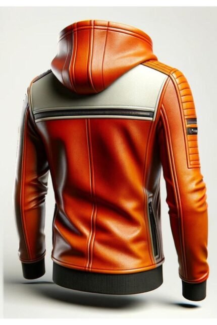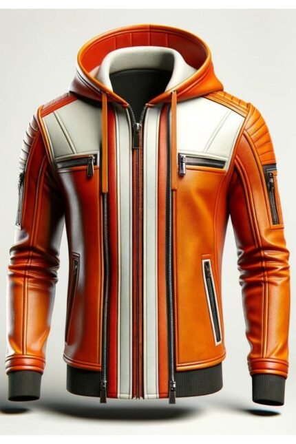 Orange White Leather Jacket For Men