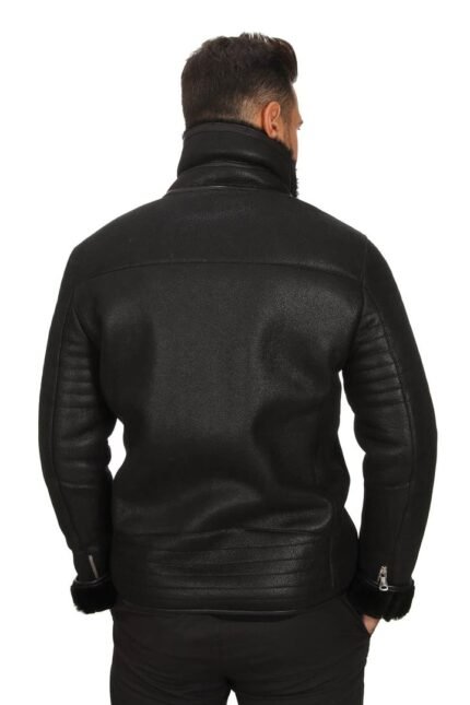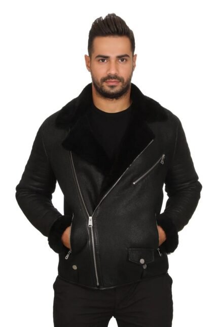 Theodore Black Fur Collar Leather Jacket For Men