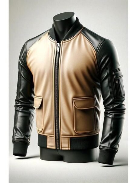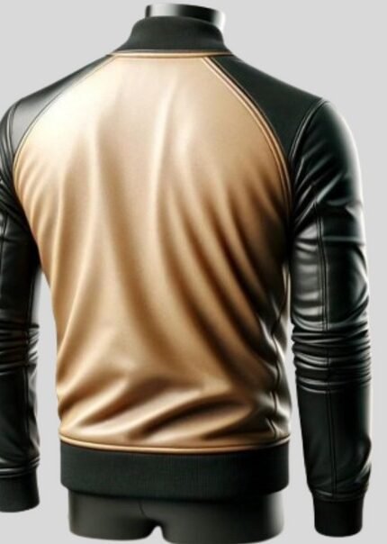 Skin Color And Black Bomber Leather Jacket For Men