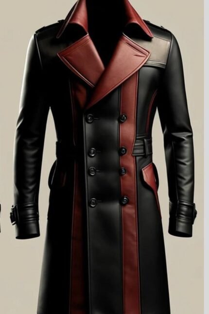 Captain Red & Black Leather Coat For Men