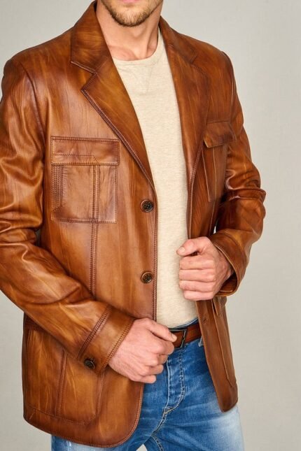 • Functional Front Pockets – Two spacious flap pockets brown leather jacket for easy storage of essentials like phone, wallet, or keys.