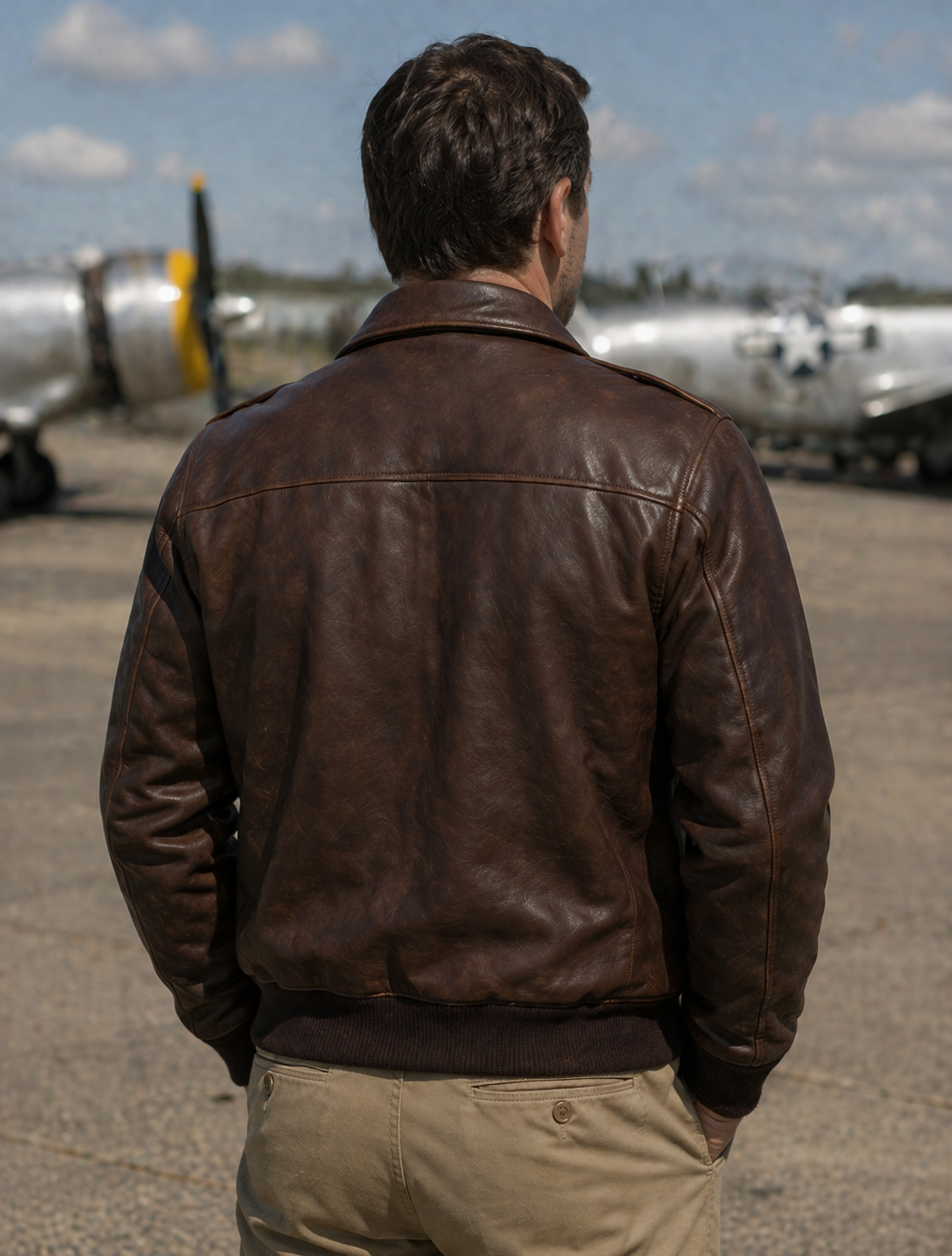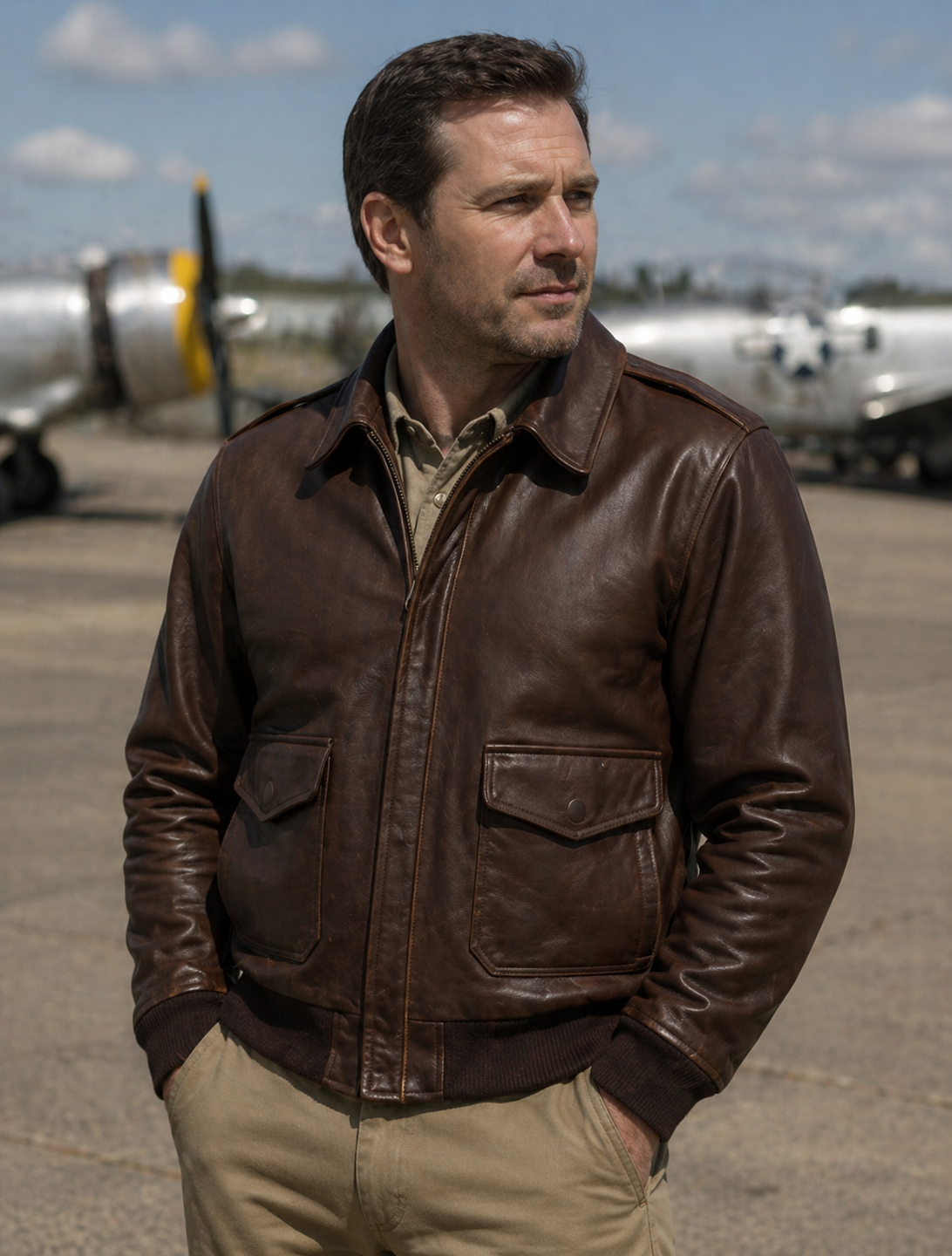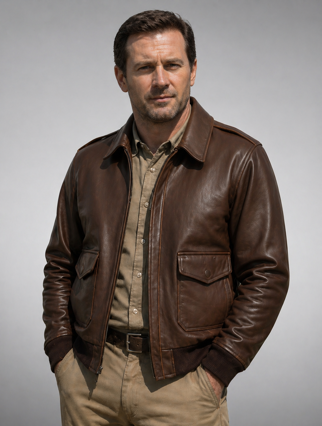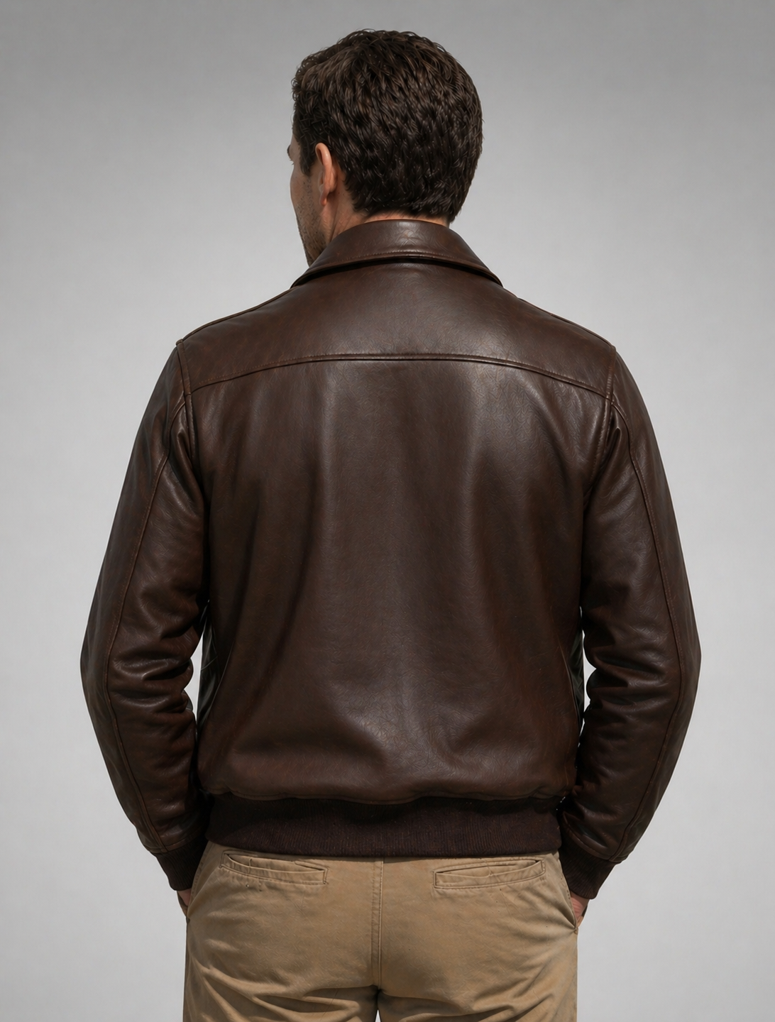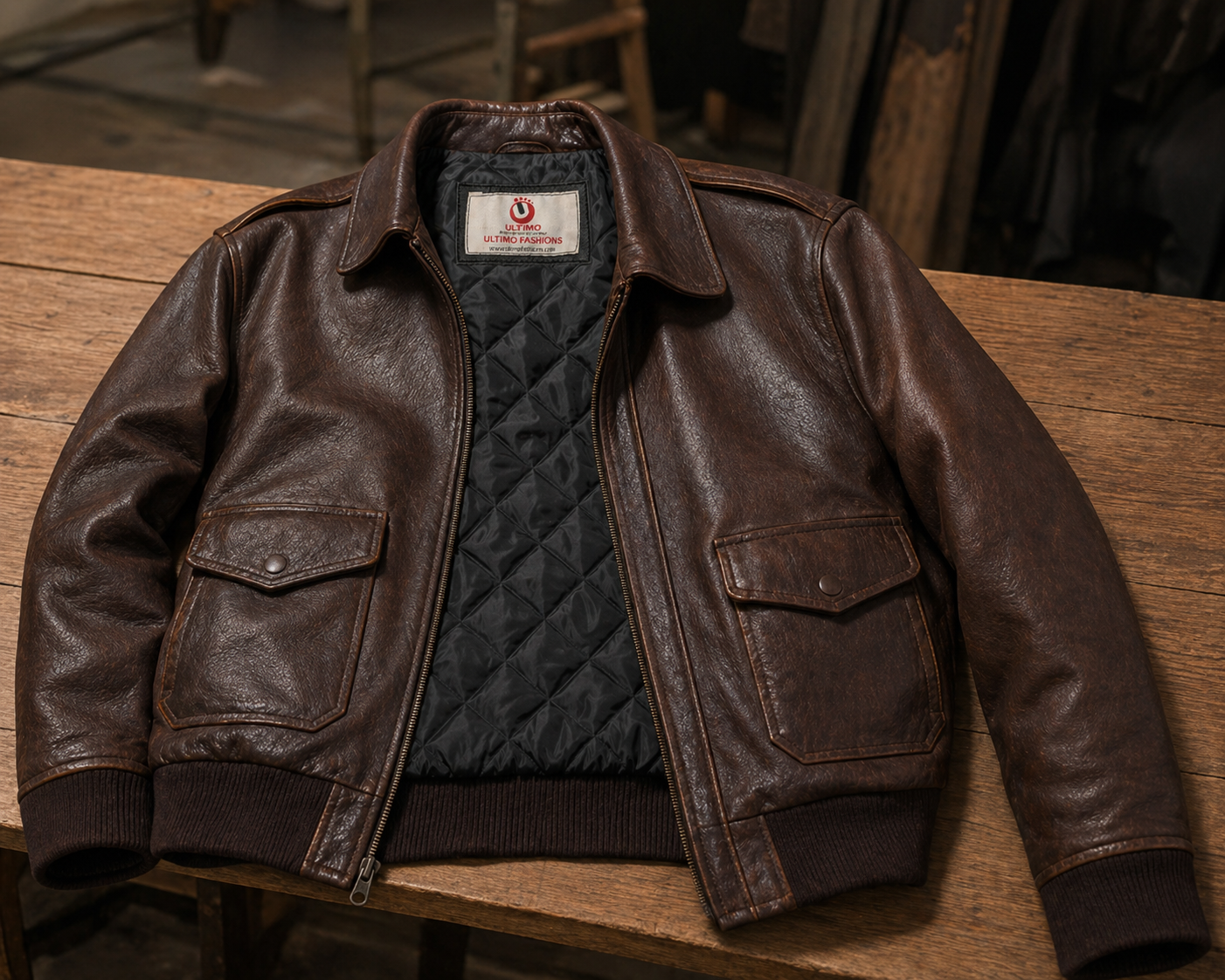 Step into a legacy of style with the Ultimo Fashions A2 Flight Bomber Jacket. Inspired by the classic aviator aesthetic that defined an era, this jacket is reimagined for the modern trailblazer seeking a sophisticated edge. Crafted from high-grade, supple brown leather, it features a unique grain and rich patina that only grows more distinguished with time.