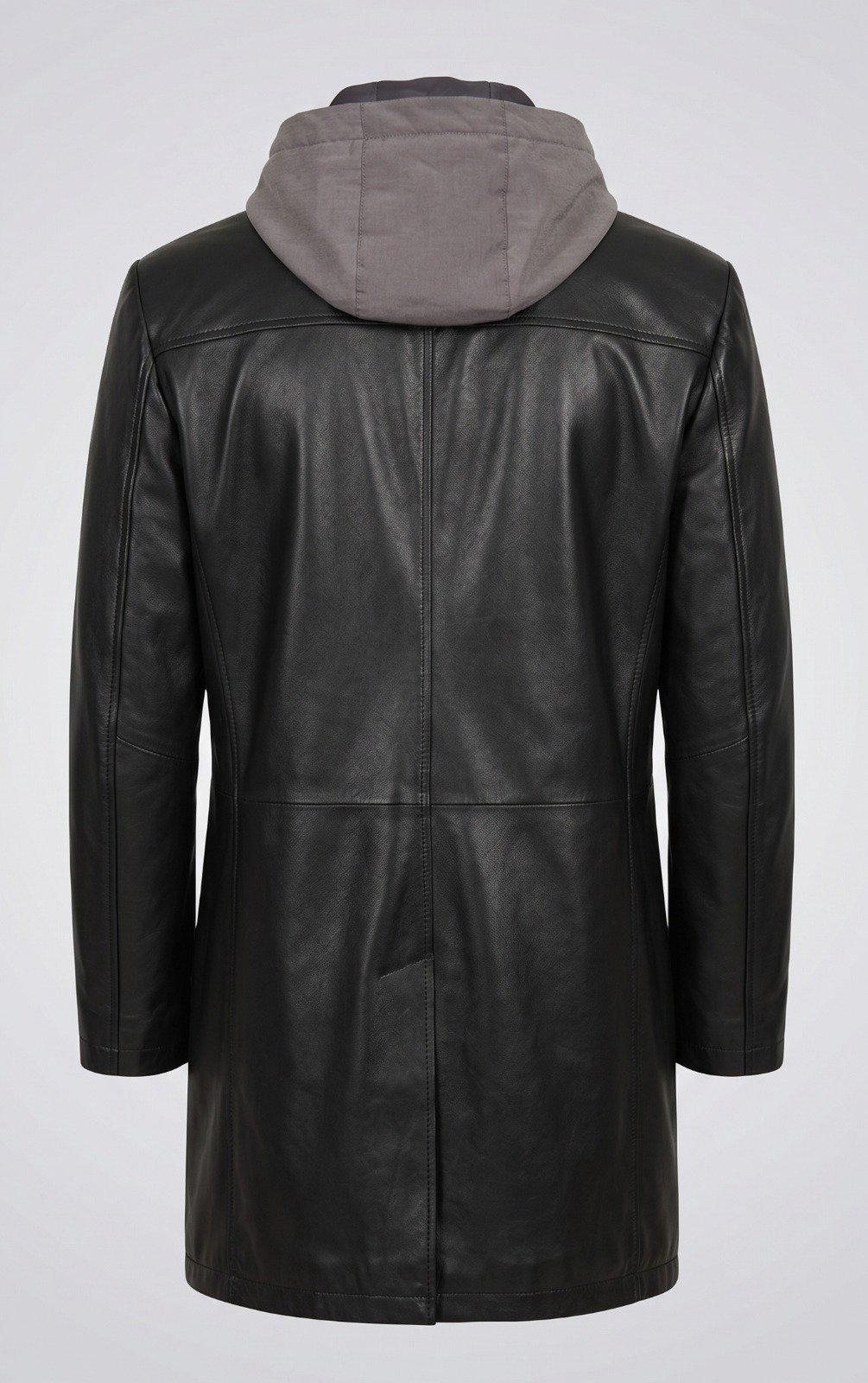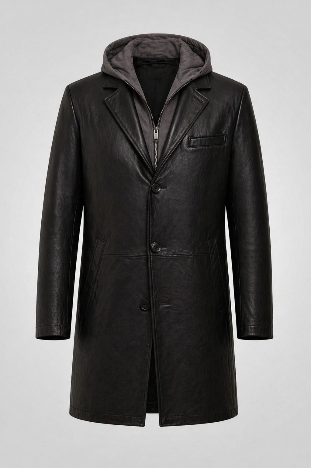 Aaron Black Leather Trench Coat – Modern Hooded Style with Timeless Appeal