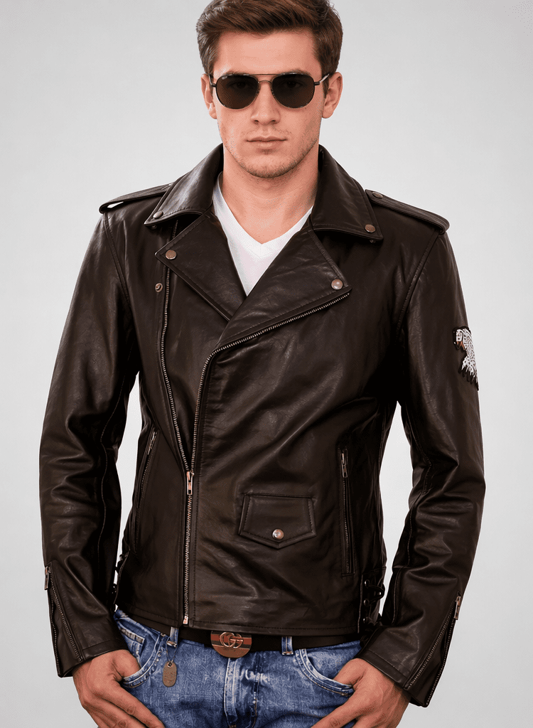 The American Lafferty Black Biker Men’s Leather Jacket is a bold and iconic outerwear piece that combines classic biker attitude with contemporary craftsmanship. Crafted from premium‑quality leather, this jacket features a sleek black finish that delivers timeless style and rugged appeal. Its biker‑inspired silhouette offers a structured, masculine fit that enhances confidence and presence.
