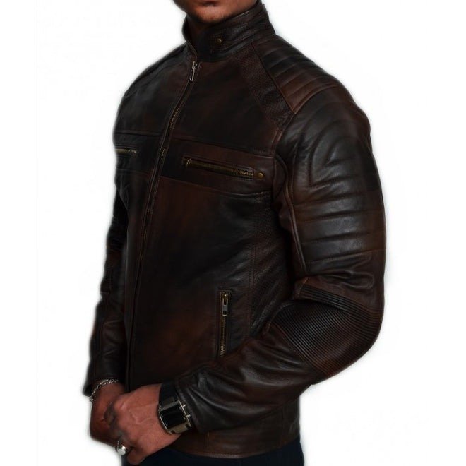 The Antique Cafe Racer Dark Brown Leather Jacket for Men is a stylish nod to classic biker culture, combining vintage charm with modern craftsmanship. Made from premium-quality dark brown leather, this jacket features a rich, antique finish that gives it a timeless, rugged appeal. Its cafe racer design offers a sleek, streamlined silhouette with a close-fitting cut that accentuates the masculine form while providing comfort and ease of movement.