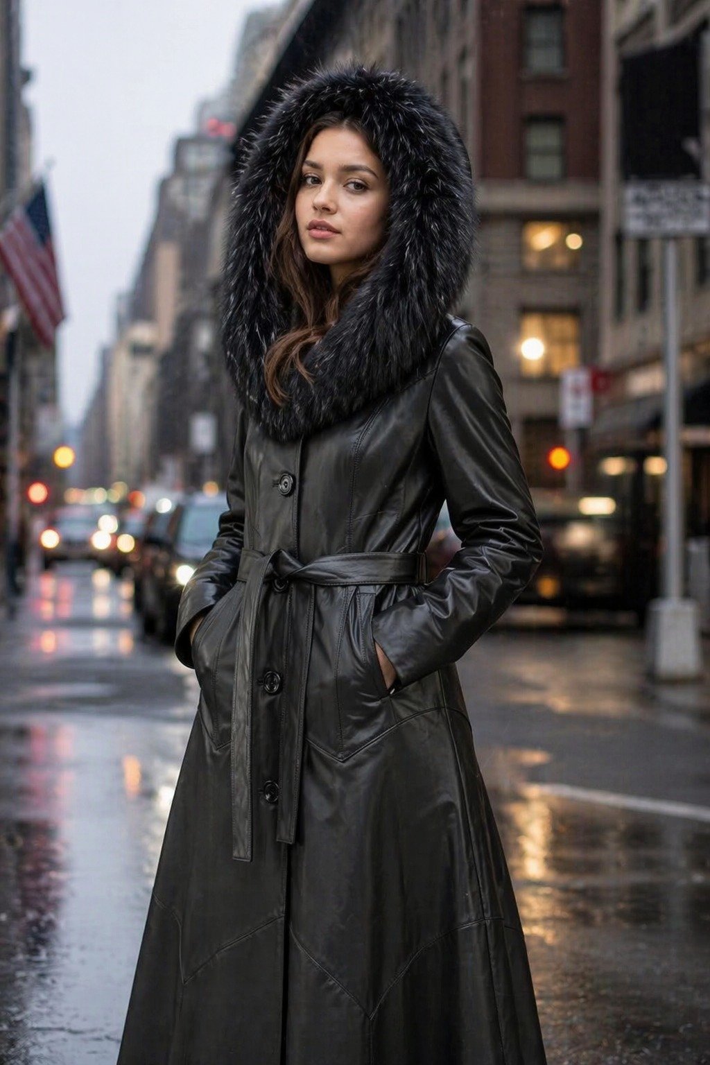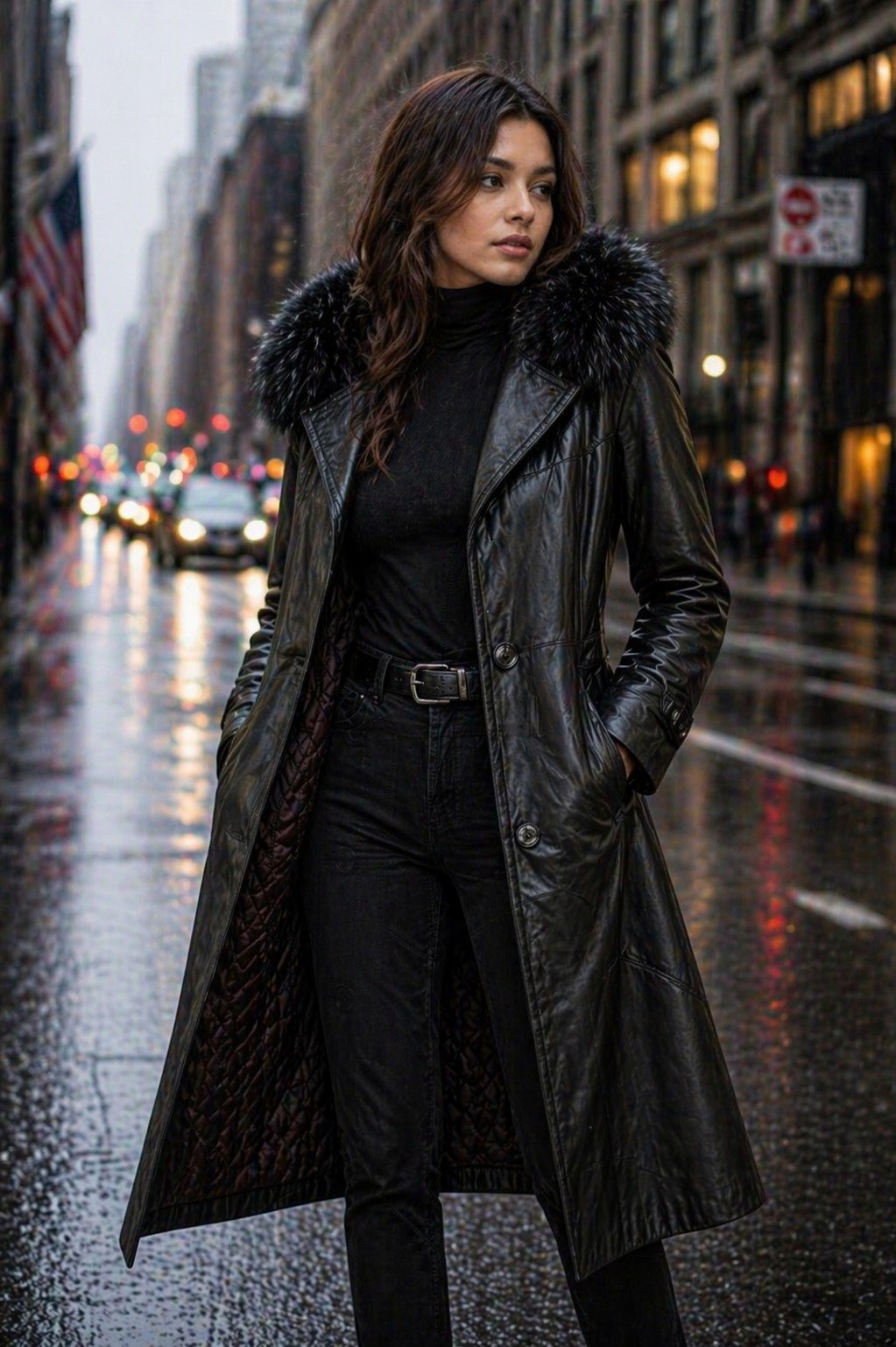 Step into effortless sophistication with the Aurora Black Fur Collar Long Leather Coat. Crafted for women who appreciate both style and substance, this coat delivers a refined silhouette with a modern edge.