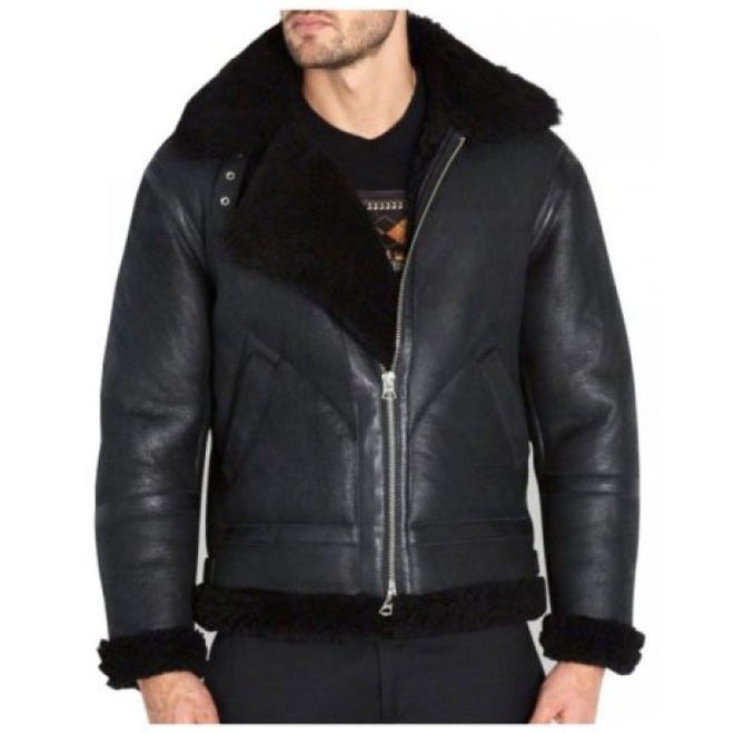 Designed in the iconic bomber style, the B3 jacket offers a structured yet comfortable fit that enhances the masculine silhouette. Key features include a fur-lined collar, sturdy front closures, and durable stitching for long-lasting performance. Its authentic shearling interior ensures cozy insulation, while the sleek leather exterior delivers timeless style and sophistication.