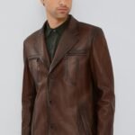 The Barnard Slim Fit Brown Leather Jacket for Men is a refined and stylish outerwear piece that combines modern tailoring with timeless appeal. Crafted from premium-quality leather, this jacket features a rich brown finish that adds warmth and versatility to any wardrobe. Its slim-fit design delivers a sleek, tailored silhouette that enhances the masculine form while ensuring comfort and ease of movement.