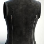 This women’s black leather vest is detailed with fine stitching, durable hardware, and a comfortable inner lining, ensuring both style and functionality. The breathable lining offers comfort throughout the day, while the structured design maintains its shape, giving you a polished and sophisticated appearance. Practical pockets provide convenience, keeping essentials close while enhancing the overall aesthetic.