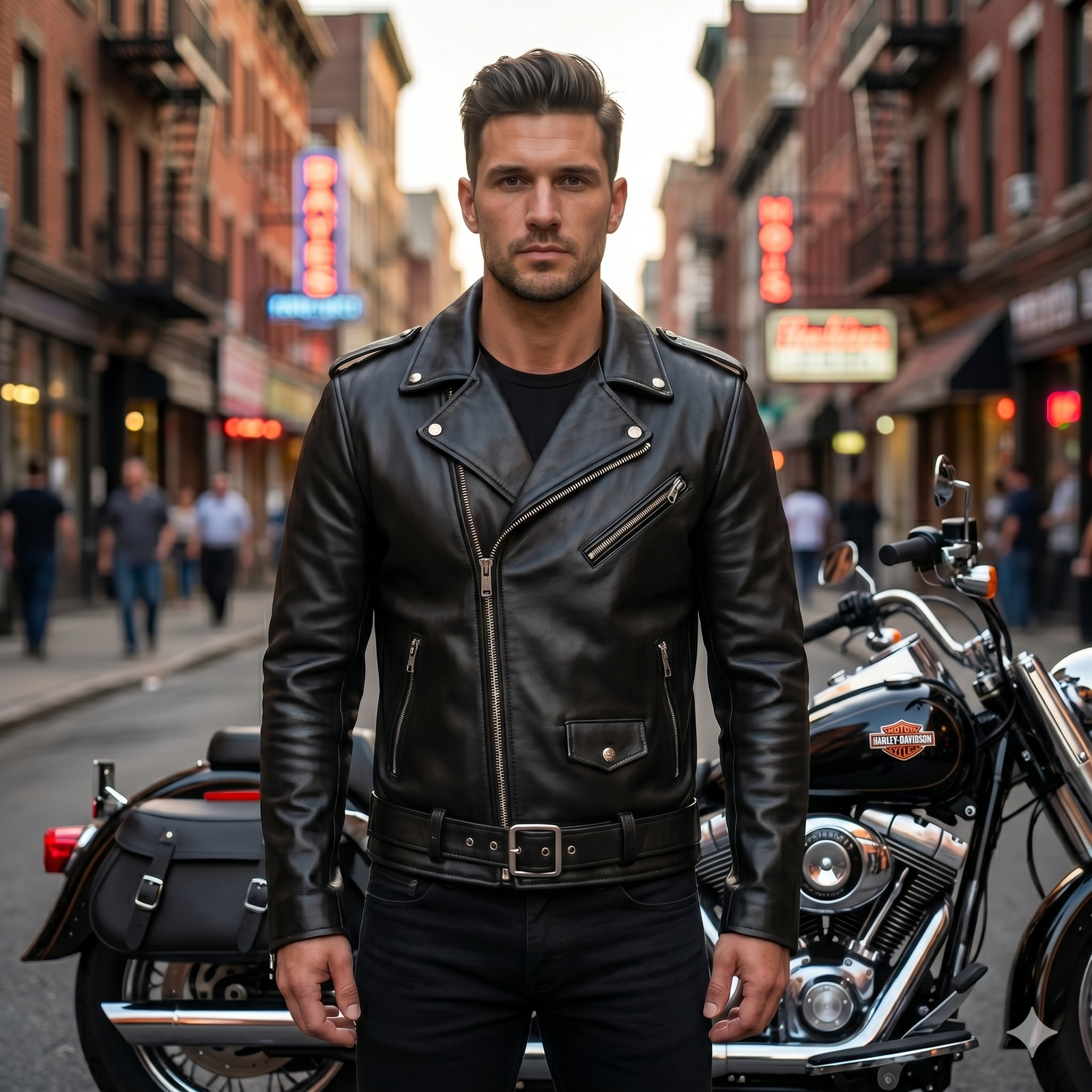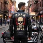 Make a bold statement with the Born to Ride Brando Leather Jacket, inspired by classic motorcycle culture and iconic biker style. Crafted from premium genuine leather, this men’s moto jacket delivers durability, comfort, and a sleek modern fit. Featuring a signature asymmetrical zipper, belted waist, and quilted inner lining, it offers both function and timeless appeal. The standout “Born to Ride” skull graphic on the back adds a rebellious edge, perfect for riders and streetwear enthusiasts. Whether cruising the open road or styling a city look, this leather jacket blends rugged attitude with classic design for a confident finish.