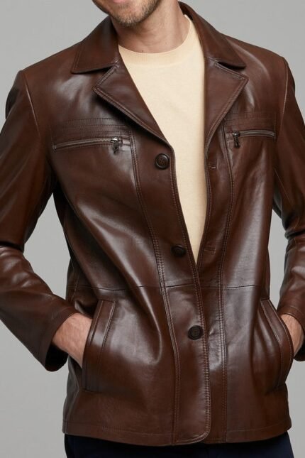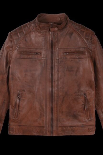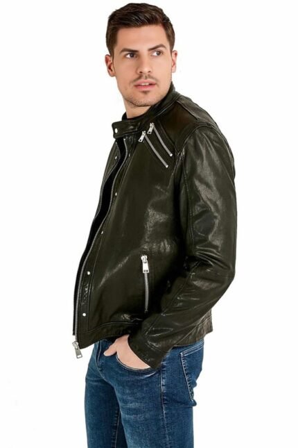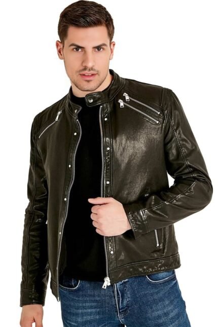 This olive-colored classic leather jacket for men is a masterpiece of style and sophistication. Made from pure sheep skin leather, this jacket boasts a distressed leather finish that adds a touch of rugged charm. The slim fit design ensures a flattering silhouette, making it a perfect choice for the modern man. The front zipper closure, equipped with premium YKK zippers, not only enhances the jacket’s sleek appearance but also ensures durability and smooth operation. Functionality meets fashion with this jacket, featuring two lower side pockets for easy access to essentials and three upper side pockets for added convenience and style. Inside, you’ll find two additional pockets, perfect for securely storing your valuables. This jacket is a versatile addition to any wardrobe, effortlessly transitioning from casual to semi-formal occasions. The rich olive color sets it apart, offering a unique yet timeless appeal. Whether you’re heading out for a night on the town or a casual day out, this jacket is your go-to choice for impeccable style and practicality.