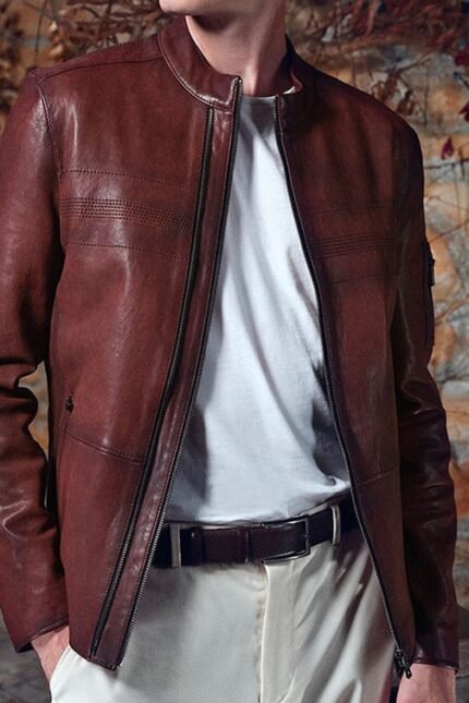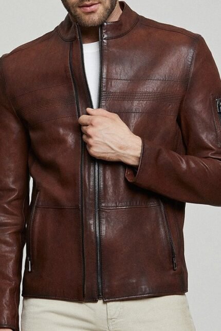 Samuel Brown Cafe Racer Leather Jacket For Men