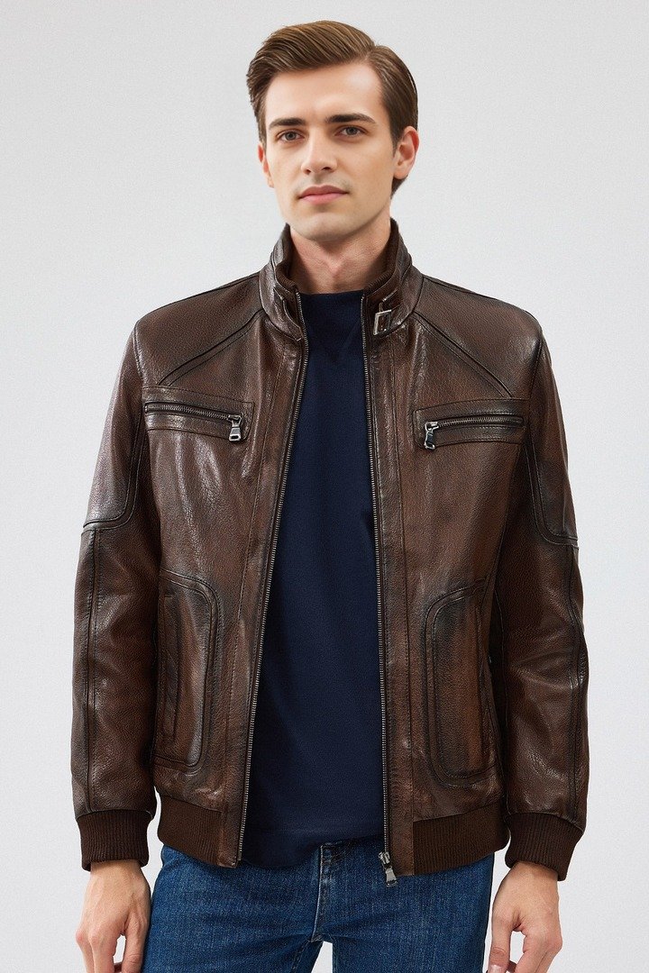 Crafted for men who appreciate understated luxury and everyday versatility, this classic brown leather jacket is a perfect balance of rugged appeal and refined design. Made from high-quality genuine leather, it features a rich, natural texture that develops character over time, making each jacket uniquely yours. The smooth finish and structured silhouette give it a premium look suitable for both casual and smart-casual wear.