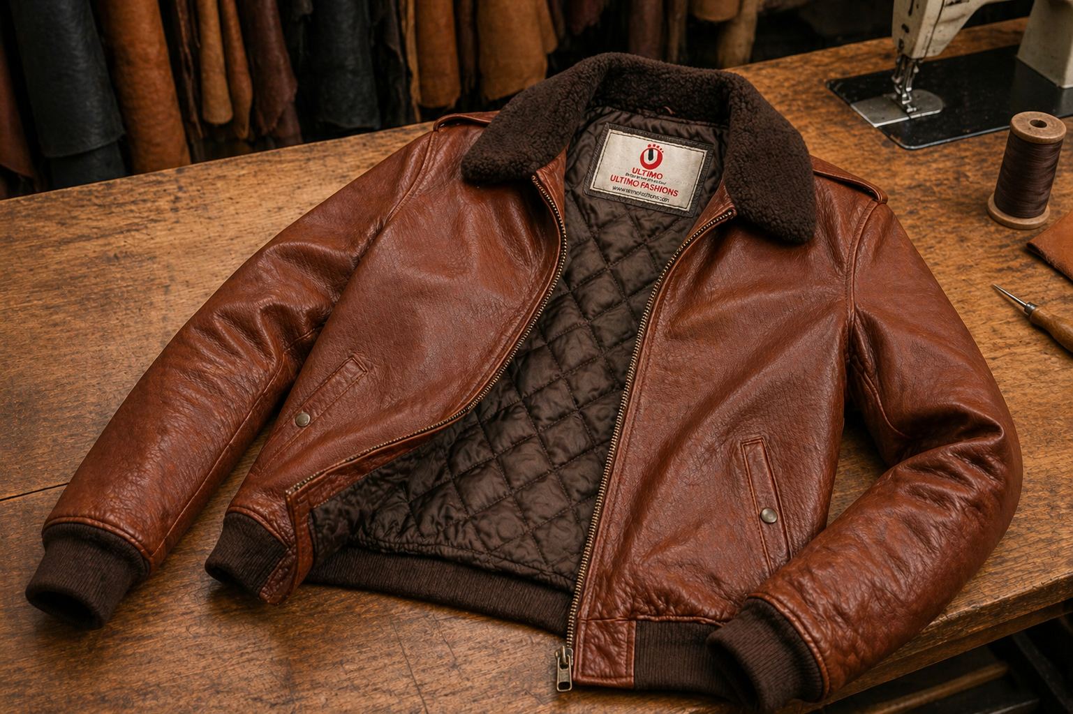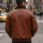Classic Aviator Style Brown Leather Jacket with Shearling Collar