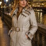 Designed with a structured, belted silhouette, this jacket enhances your natural shape while offering a customizable fit. The adjustable waist belt with a statement buckle creates a flattering contour, making it ideal for both casual outings and elevated evening wear. A sleek front zipper closure ensures ease of wear, while the quilted inner lining delivers comfort and insulation without adding bulk.