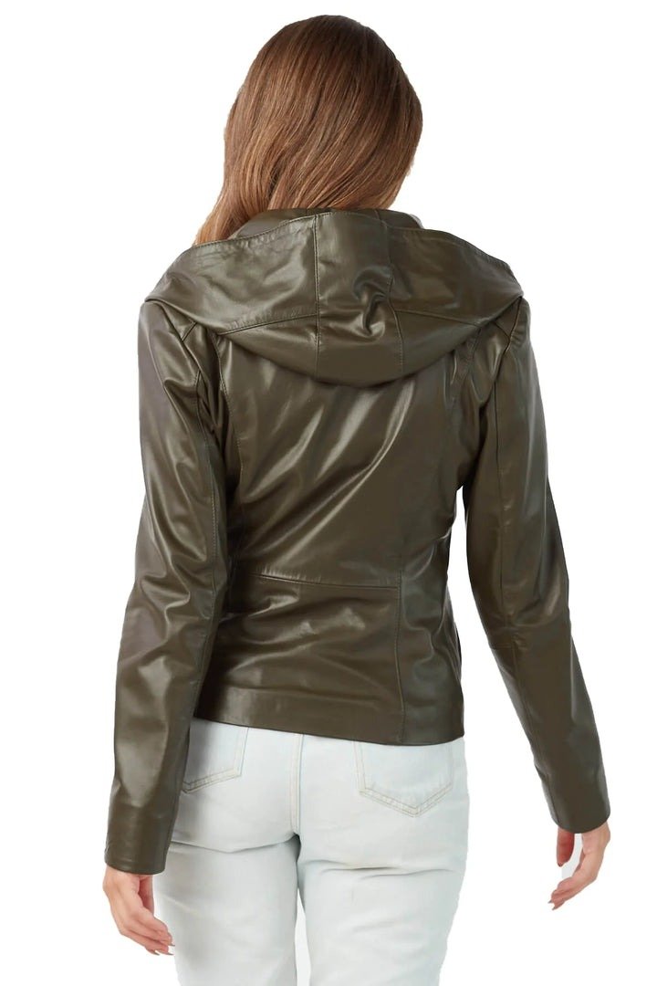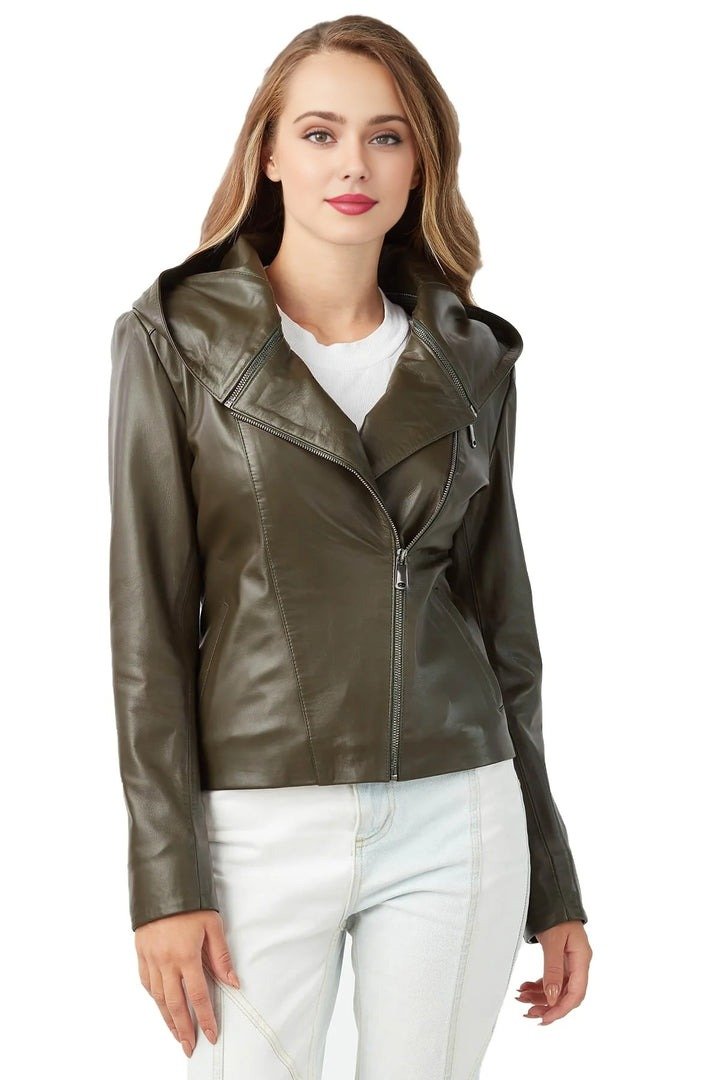 Perfect for pairing with jeans, leggings, or boots, the Jessica Green Biker Leather Jacket with Hood for Women delivers premium craftsmanship, standout style, and a chic, contemporary edge for women who love bold fashion with comfort.