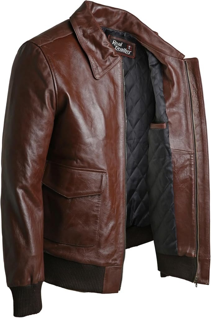 Elevate your outerwear collection with the Men’s Classic A2 Brown Leather Bomber Jacket, a timeless fusion of heritage style and modern craftsmanship. Made from premium real leather, this jacket offers a smooth, rich texture that develops character with every wear. Its deep brown tone adds a bold yet sophisticated appeal, perfect for both casual and semi-formal outfits. Designed with the iconic A2 bomber silhouette, it features a structured collar and front flap pockets for an authentic vintage look. Ribbed cuffs and waistband ensure a comfortable fit that stays in shape over time. The jacket’s inner lining provides added warmth, making it ideal for year-round wear. Crafted with precision stitching, every detail reflects durability and long-lasting quality. This bomber jacket effortlessly complements jeans, chinos, or your favorite boots. Whether you’re heading out for a night drive or dressing up for a weekend outing, it enhances your overall style. Its glossy finish brings a subtle touch of luxury that stands out without being overpowering. Perfect for men who value classic fashion with a rugged edge. A wardrobe essential that never goes out of style. From everyday wear to special occasions, this jacket adapts to every moment. Feel the confidence and comfort in every step with this iconic piece. Experience the perfect blend of tradition, attitude, and premium craftsmanship. Own the jacket that defines timeless masculinity