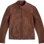 Be the first to review “Men’s Classic Brown Leather Stand Collar Jacket – Premium Smooth Real Leather, Casual Moto Style”