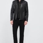 Be the first to review “Men’s Leather Biker Jacket – Quilted Shoulders, Asymmetrical Zip, Hoodie Layered Style with Zippered Pockets”