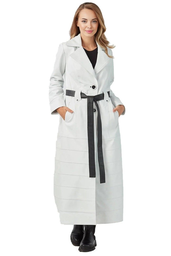 The Natalia White Long Leather Coat for Women is a stunning fashion piece that combines timeless elegance with modern sophistication. Crafted from premium-quality leather, this coat features a crisp white finish that adds a fresh, luxurious touch to any wardrobe. Its long-length design creates a graceful, flowy silhouette that enhances the feminine shape and offers both style and coverage—perfect for cooler days or elevated outfits.