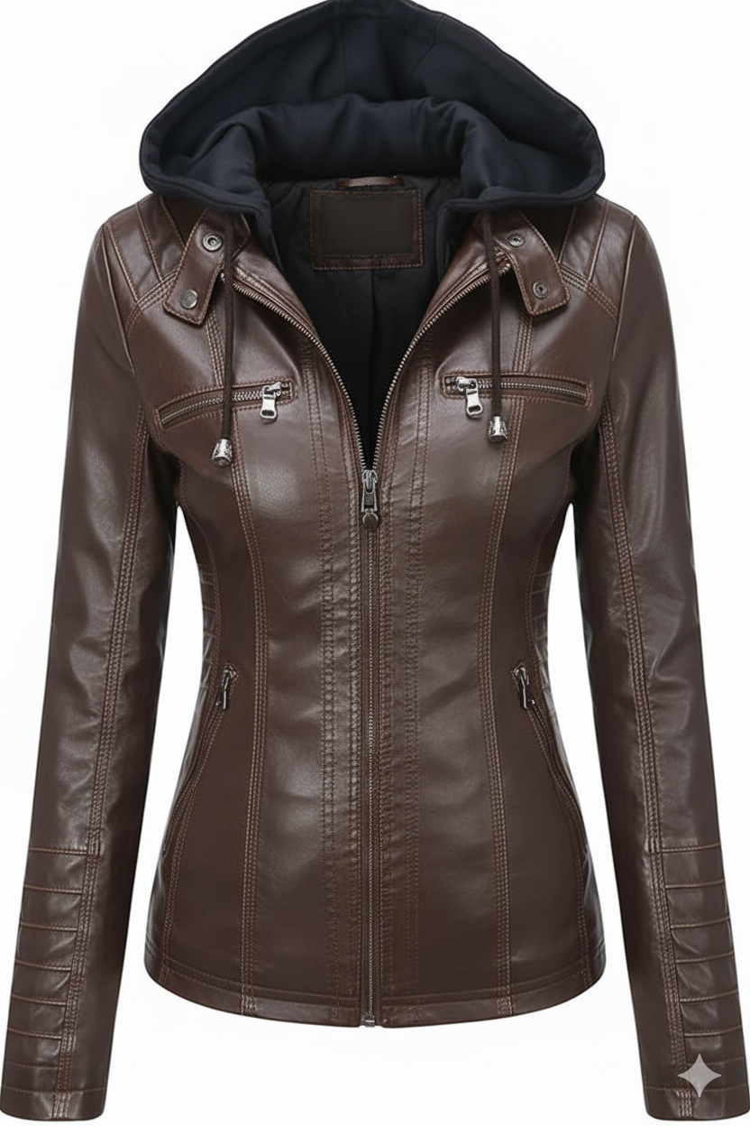 The Ravenna Classic Brown Leather Hoodie Jacket features premium leather, a flattering fit, and a cozy attached hoodie, offering timeless style, comfort, and modern versatility for everyday wear.