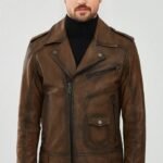 Unleash rugged charm with this distressed brown leather jacket, designed for bold and timeless style.
