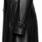 Make a bold statement with this luxurious full-length leather trench coat. Crafted from premium black leather, this sophisticated coat features a plush fur collar that adds both warmth and elegance. The classic double-breasted design with button closure creates a timeless silhouette, while the belted waist allows for a customized, flattering fit. The coat’s long length provides excellent coverage and protection during cold weather. Detailed with traditional trench coat elements including adjustable cuff straps and side pockets, this piece combines functionality with high fashion. The sleek leather construction ensures durability while maintaining a polished appearance. Perfect for both professional and formal occasions, this coat serves as a versatile addition to any winter wardrobe. The coat’s tailored structure and expert craftsmanship ensure a refined look that transitions seamlessly from day to evening wear. For best results, professional leather cleaning is recommended to maintain the coat’s pristine appearance.
